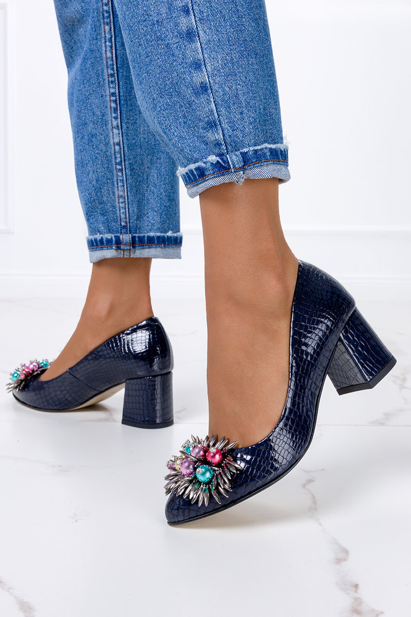Czarne Czółenka na Obcasie Ozdobione Paskiem ze Sprzączką Enathlin